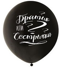 Одноцветный, большой, высококачественный шар из натурального латекса. Шар черного цвета с двухсторонним шелкографическим рисунком Братик или Сестричка? Традиционный американский праздник #genderrevealparty, на котором узнают пол будущего ребенка набирает популярность в России! Для самого важного момента вечеринки: Большой шар заполняется маленькими шарами (можно добавить конфетти) голубого или розового цвета с воздухом. В ответственный момент лопается и сразу становится понятно кто родится. Большой шар, который при надувании не теряет сочность своего цвета. Шар оформлен атласными лентами и установлен на грузике. Гелий, конфетти, маленькие шарики в стоимость входят. ВНИМАНИЕ: шарики, которые внутри НЕ летают к потолку!