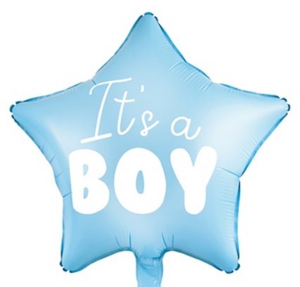 Фигурный шар из фольги с гелием в виде голбуой звезды с надписью It's Boy, отличный вариант для выписку из роддома мальчика или сюрприза на гендерной вечеринке. Размер шара 46 см.