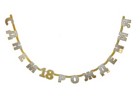 Буквенная голографическая гирлянда на День Рождения в честь 18 летия! Цвета золото и серебро. Длина 240 см.