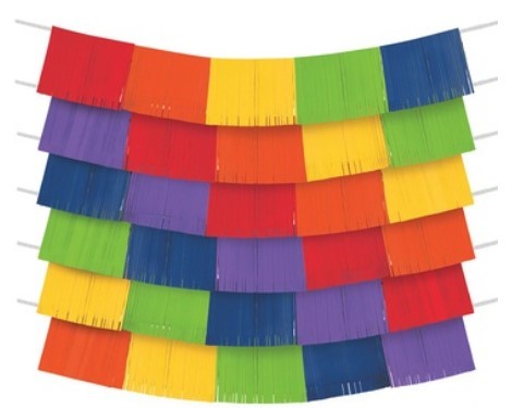 Набор гирлянд в виде бахромы яркой и разноцветной радуги. В упаковке 9 гирлянд длиной 150 см и высотой 25 см каждая. Можно использовать как гирлянду или декорировать стену для фотозоны.