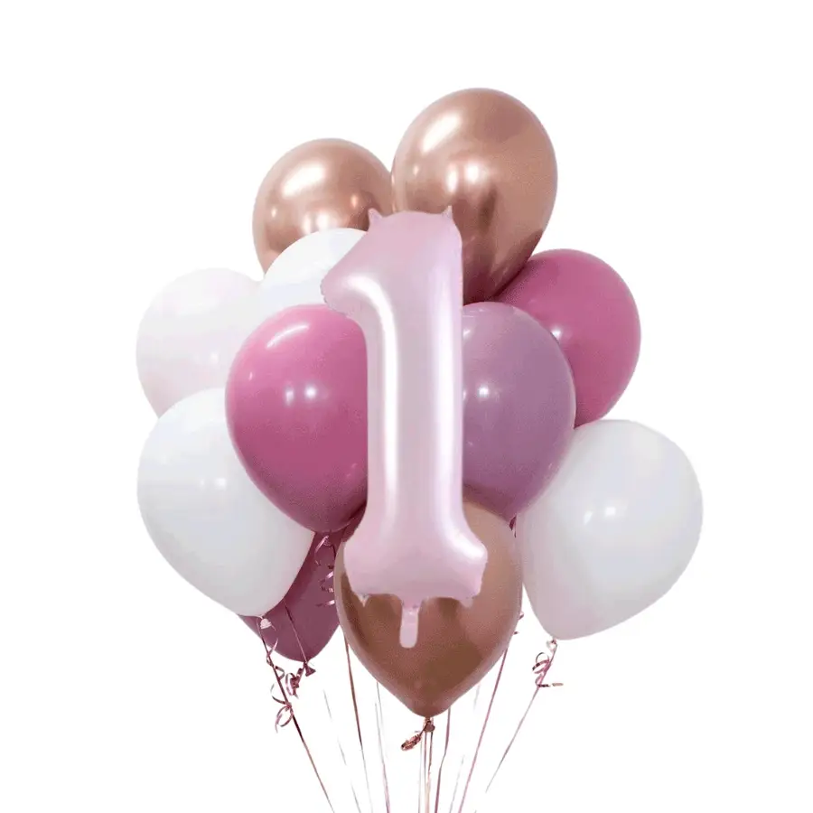 Красивый букет из латексных шаров и цифры 1 (или другой номер) нежно-розового цвета на годик Вашей малышки или День Рождения девочке! В состав входят: