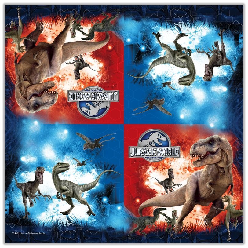 Бумажные одноразовые салфетки с изображением динозавров Юрского Периода. В упаковке 20 шт, размер 33 см.