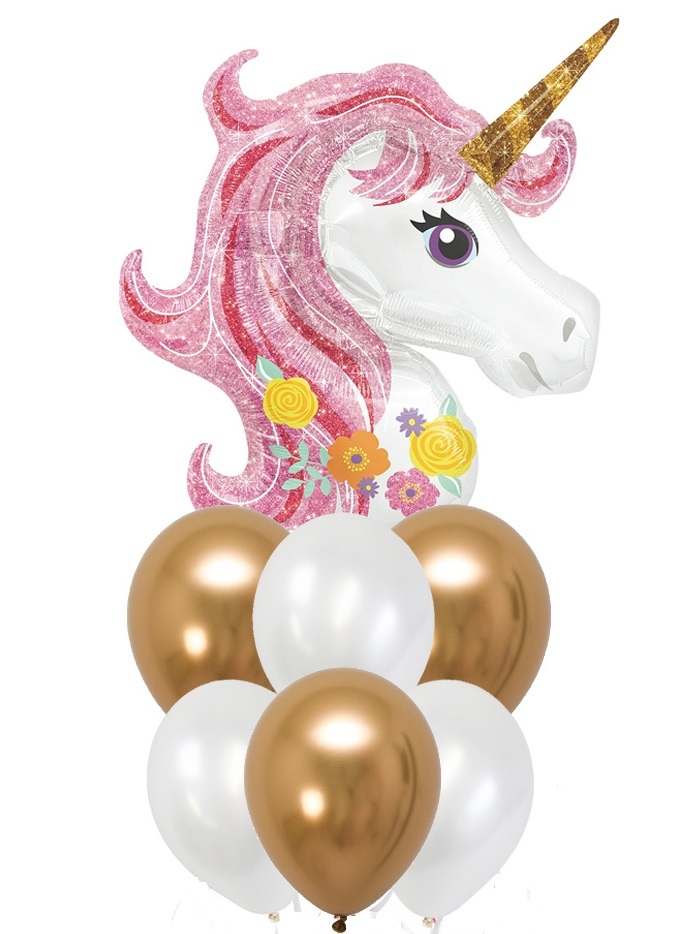 Небольшой набор шариков с головой Единорога в бело-золотых цветах. В подарок отлично подойдет для девочки и для женщинв одинаково хорошо. Состав фонтана: