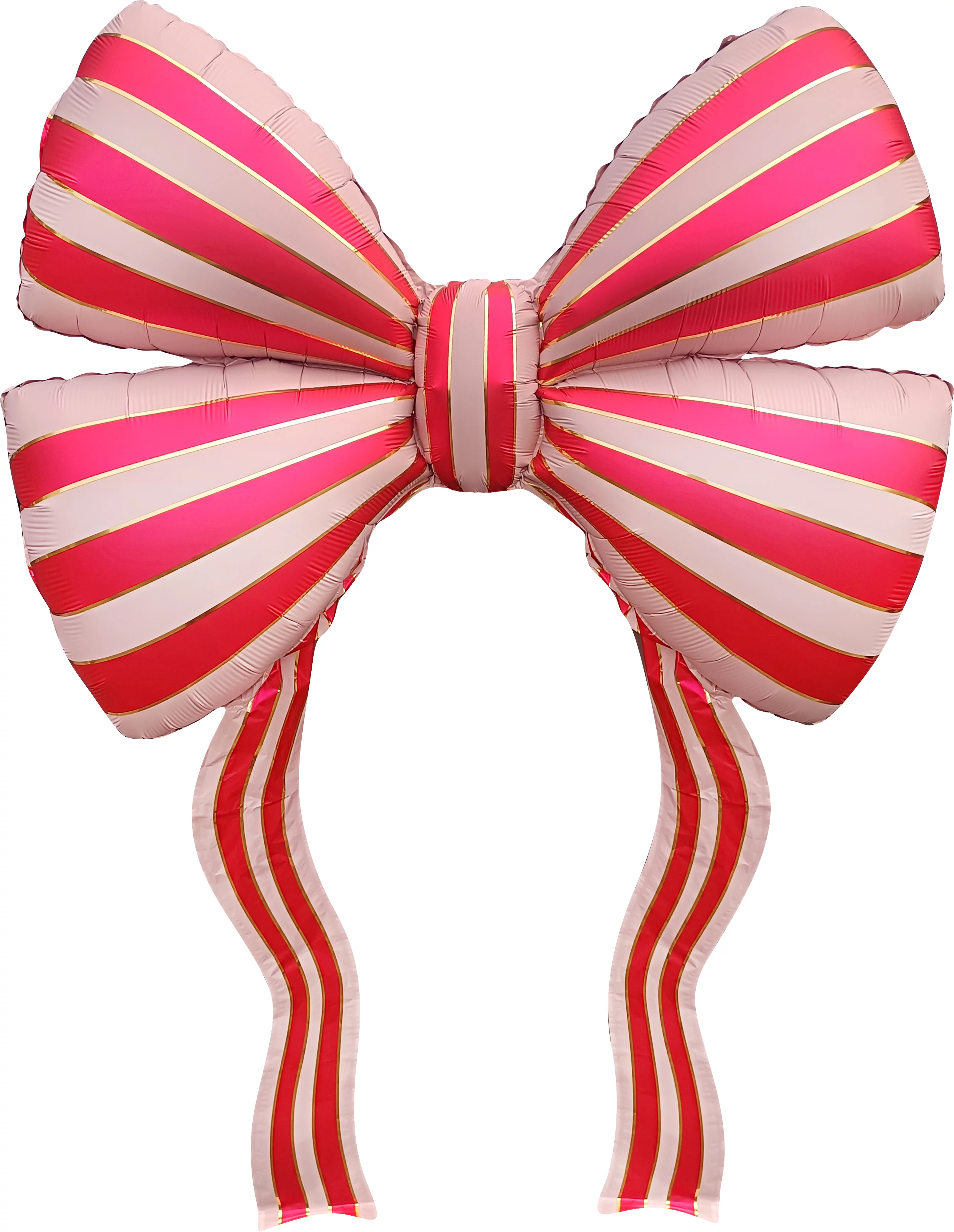 Фигурный шар из фольги с гелием в виде банта в полоску розового и красного цвета со свисающими "фольгированными ленточками", размер фигуры без учета наполнения 155 см. Фигура доставляется с гелием. Отличный вариант для подарка на любой праздник, а так же для декорирования фотозоны!