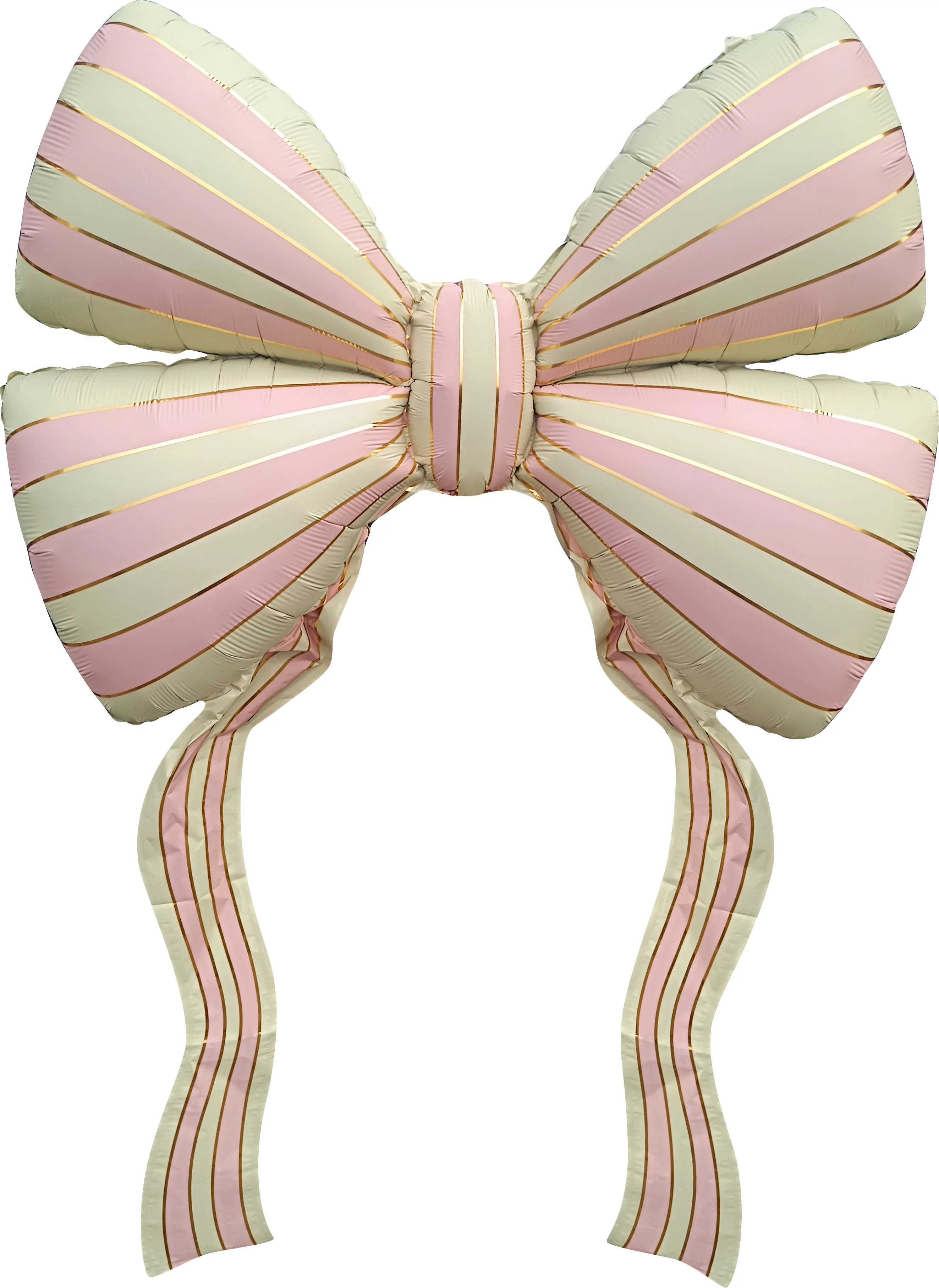 Фигурный шар из фольги с гелием в виде банта в полоску кремового и розового цвета со свисающими "фольгированными ленточками", размер фигуры без учета наполнения 155 см. Фигура доставляется с гелием. Отличный вариант для подарка на любой праздник, а так же для декорирования фотозоны!