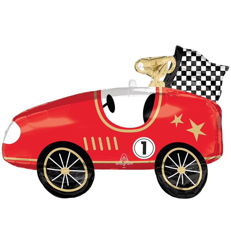 Фигурный шар из фольги с гелием в виде красной гоночной ретро-машины. Размер фигуры без учета наполнения 79 см.