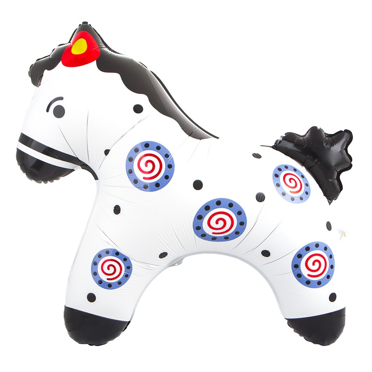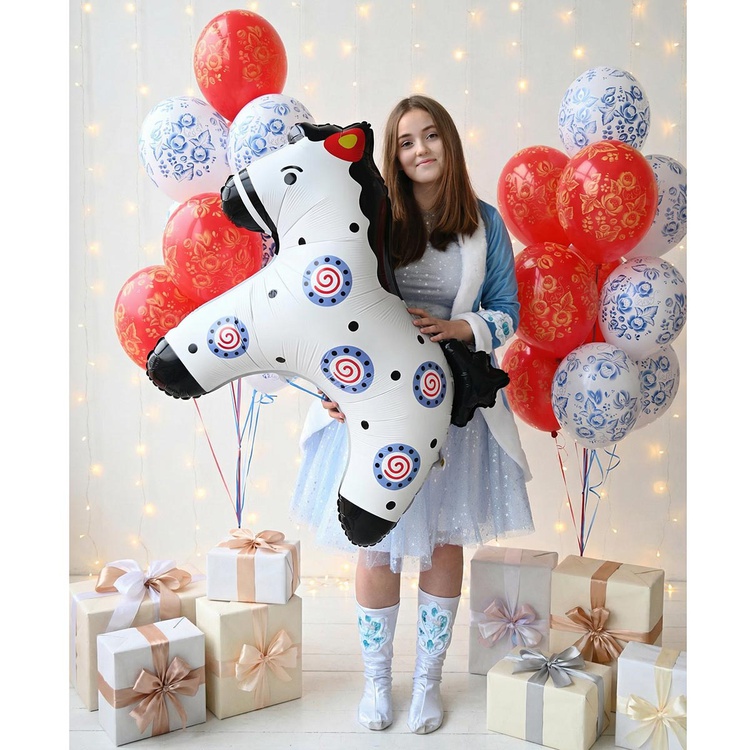 Фигурный шар из фольги с гелием в виде лошадки с дымковским узором. Размер фигуры в ненаполненном виде 99 см.