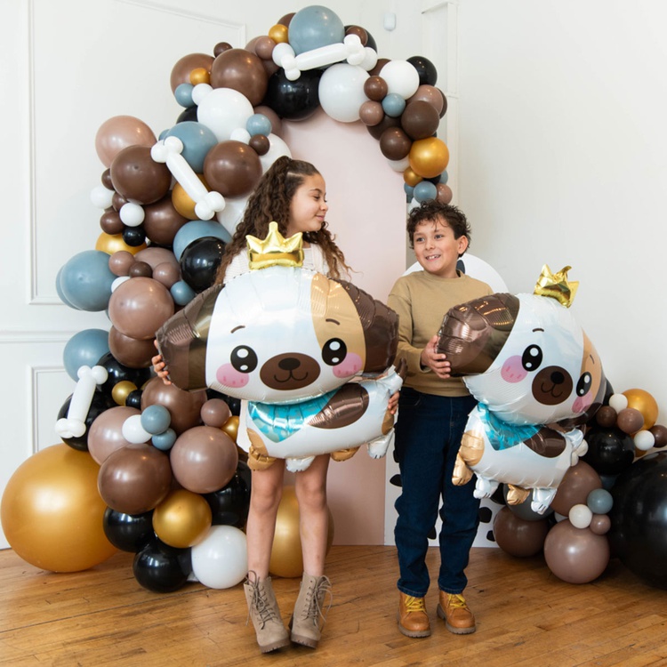 Фигурный шар из фольги с гелием в виде очень милого щеночка в короне для малышей. Размер шарика без учета наполнения 63 см.