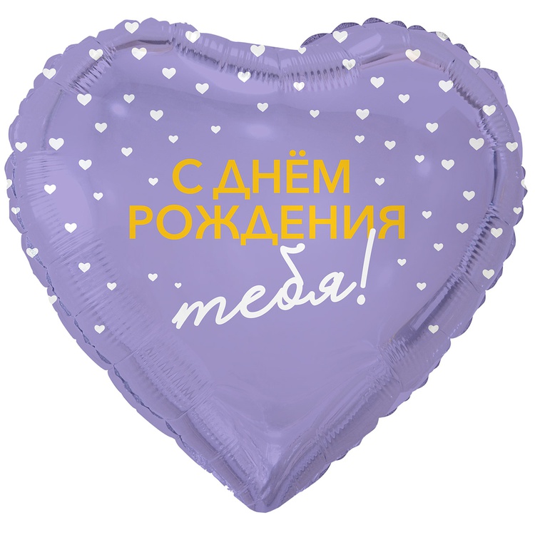 Фигурный шар из фольги с гелием в виде сердце лилового цвета с изображением маленьких сердечек на День Рождения! Размер фигуры 46 см в ненаполненном виде.
