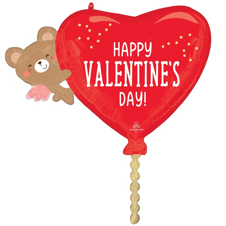 Фигурный шар из фольги с гелием в виде маленького мишки-ангелочка с сердцем в лапках с поздравлением с Днём Святого Валентина! Размер шара без учета наполнения 74 см.