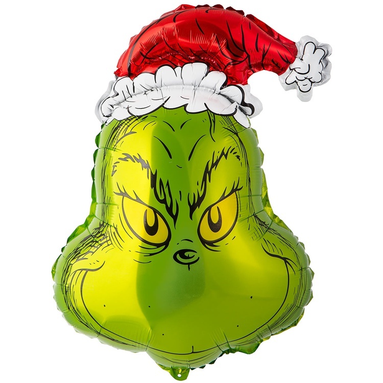 Фигурный шар из фольги с гелием в виде головы похитителя Рождества - зеленого Гринча, размер фигуры 61 см без учета наполнения.