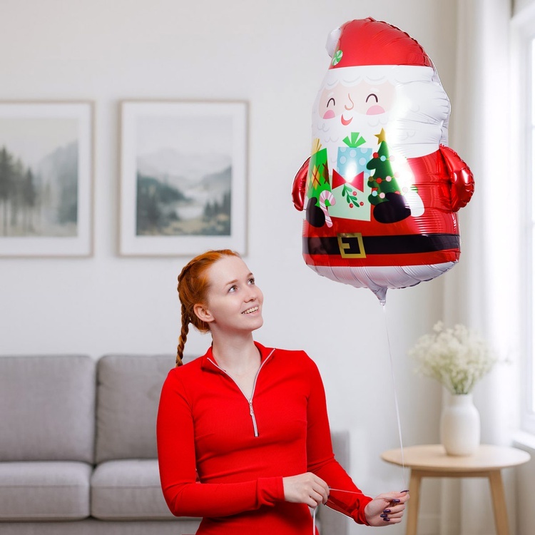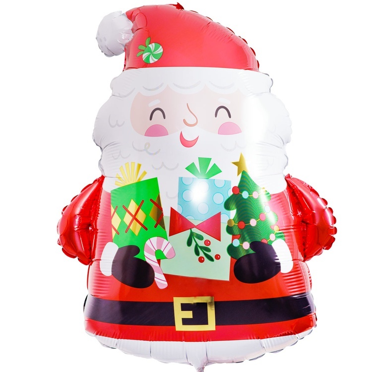 Фигурный шар из фольги с гелием в виде Санта Клауса с подарочками, размер фигуры без учета наполнения 79 см.