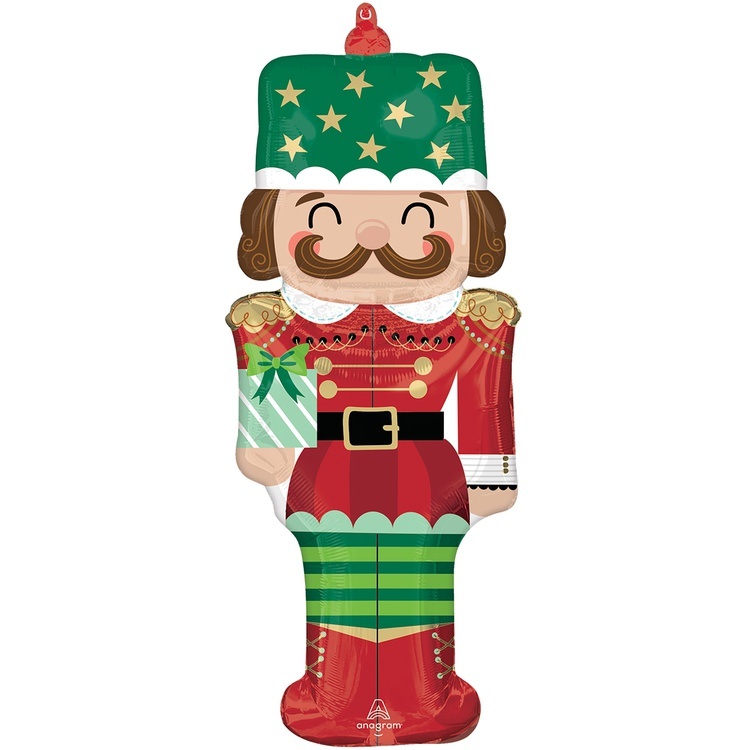 Фигурный шар из фольги с гелием в виде новогодней игрушки - классического щелкунчика с новогодними подарками. Размер фигуры 104 см без учета наполнения.