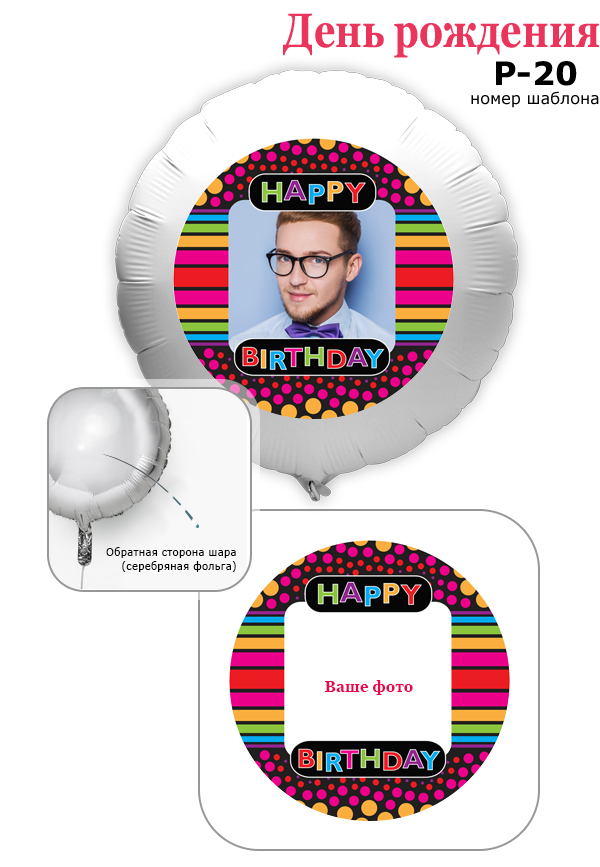 Круглый шар из фольги с гелием, с одной стороны будет Ваше фото в выбранном шаблоне + текст (если а данный вариант входит), с другой - сторона серебряная. Размер 61 см без учета наполнения. На шаре будет нанесена Ваша фотография, которую необходимо прислать после согласования с менеджерам на рабочую электронную почтe. Срок исполнения заказа - 1-3 дня (зависит от загруженности). Оплата производится после согласования макета, НО ДО печати!
