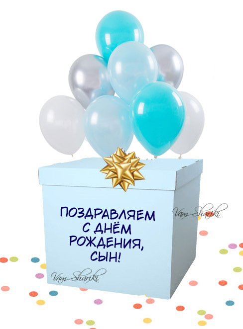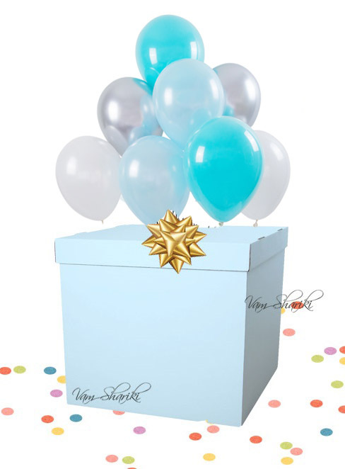 В такой вариант большого и шикарного сюрприза Вы можете положить любой небольшой подарок, то есть когда коробка будет открываться, из нее вылетят шарики с гелием, а на дне будет лежать подарок от Вас!