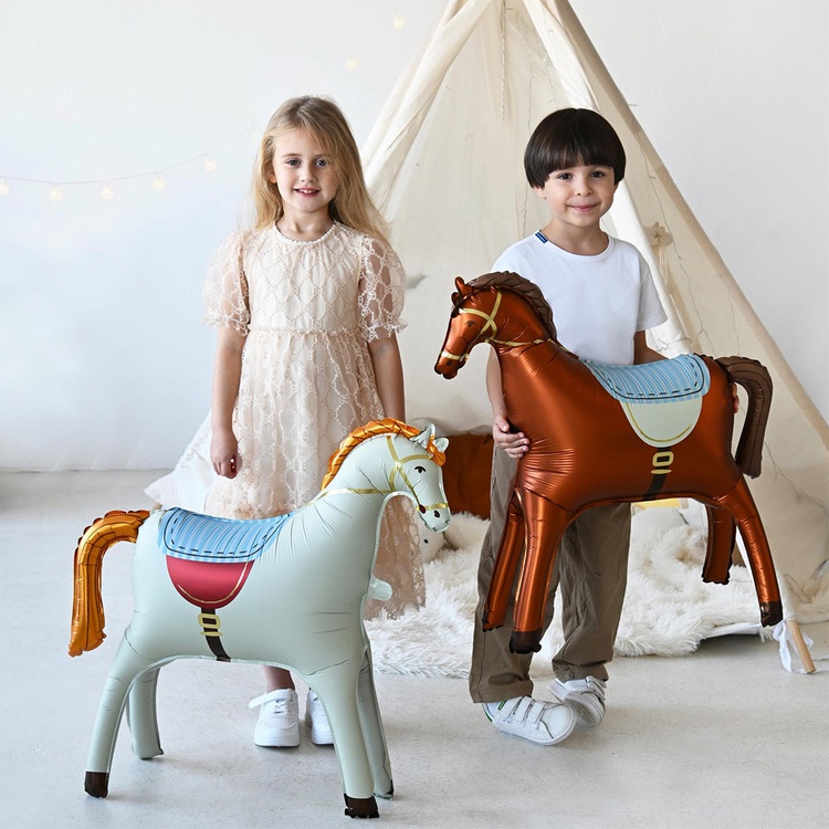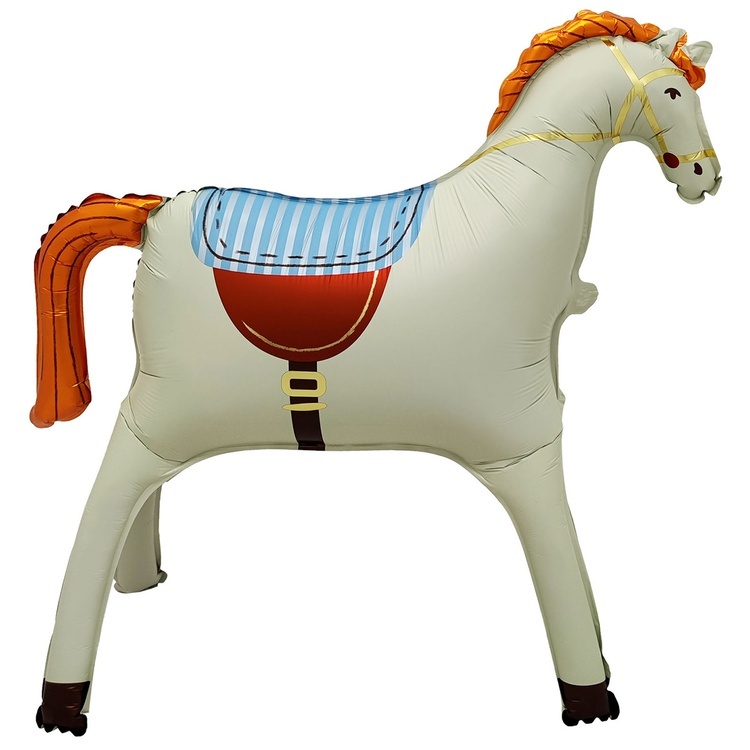 Объемная фигура из фольги, которая наполняется только воздухом, поэтому НЕ ЛЕТАЕТ. Фигура выполнена в виде кремовой лошади - на Первый День Рождения и другие праздники деткам и взрослым. Размер фигуры 89 см без учета наполнения. Можно использовать такую фигурку, как декор при оформлении праздника в едином стиле - на полу, на сладком столе или столе для празднования детям, на фотосессии.