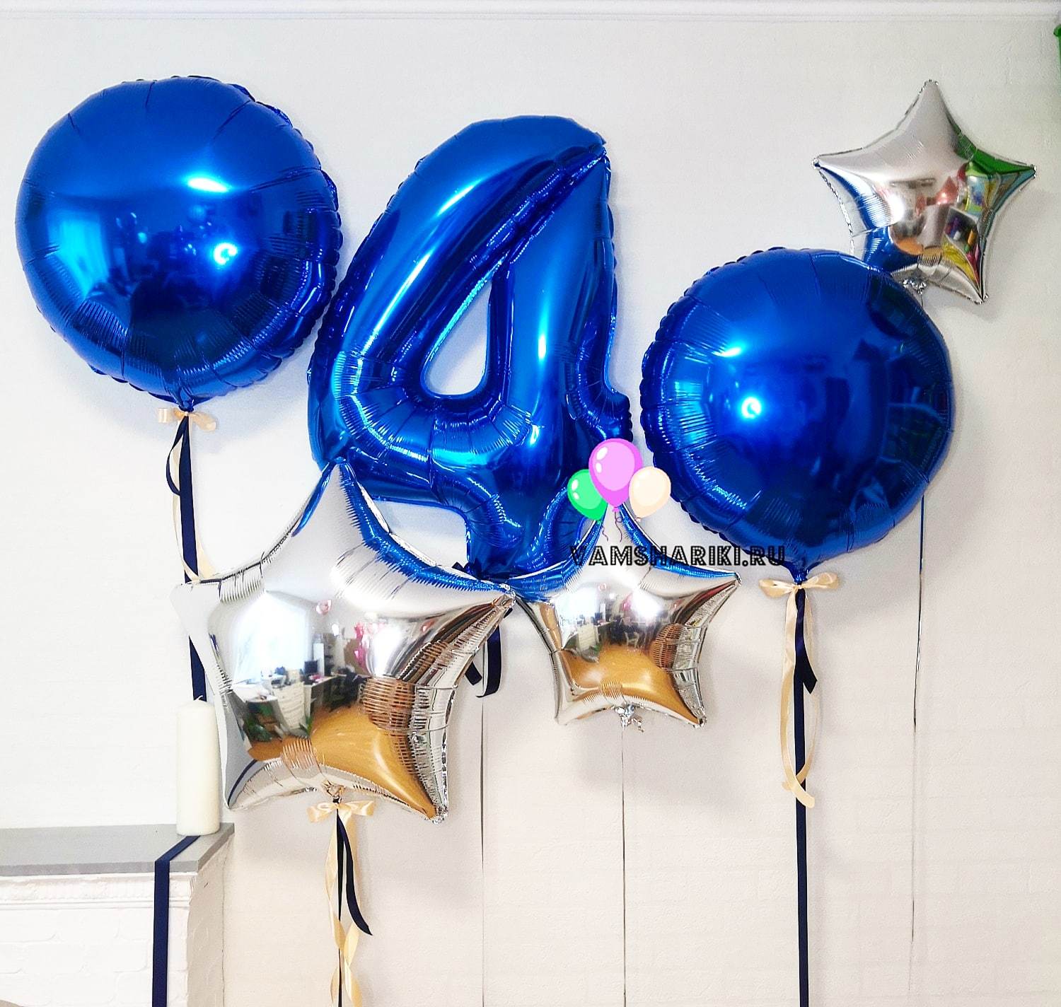 Фигурный шар из фольги синего цвета, размером 80 см. Шар наполнен гелием, отличный варант для индивидуального текста.
