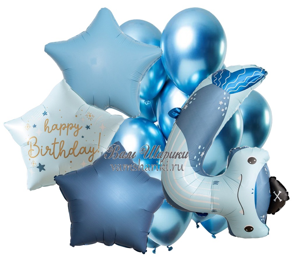 Набор шаров синего цвета с цифрой на 4 годика мальчику