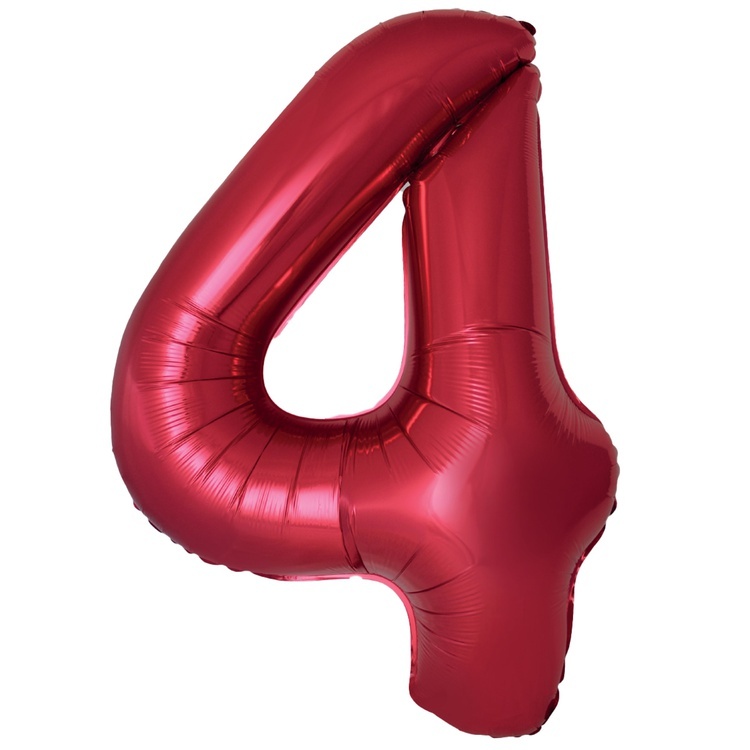 Фигурные шары из фольги в виде тонких (slim) больших цифр металлик красного цвета, размер фигуры 102 см без учета наполнения (с учетом наполнения размер цифры около 86 см). Шар наполнен гелием и установлен на грузик ручной работы.
