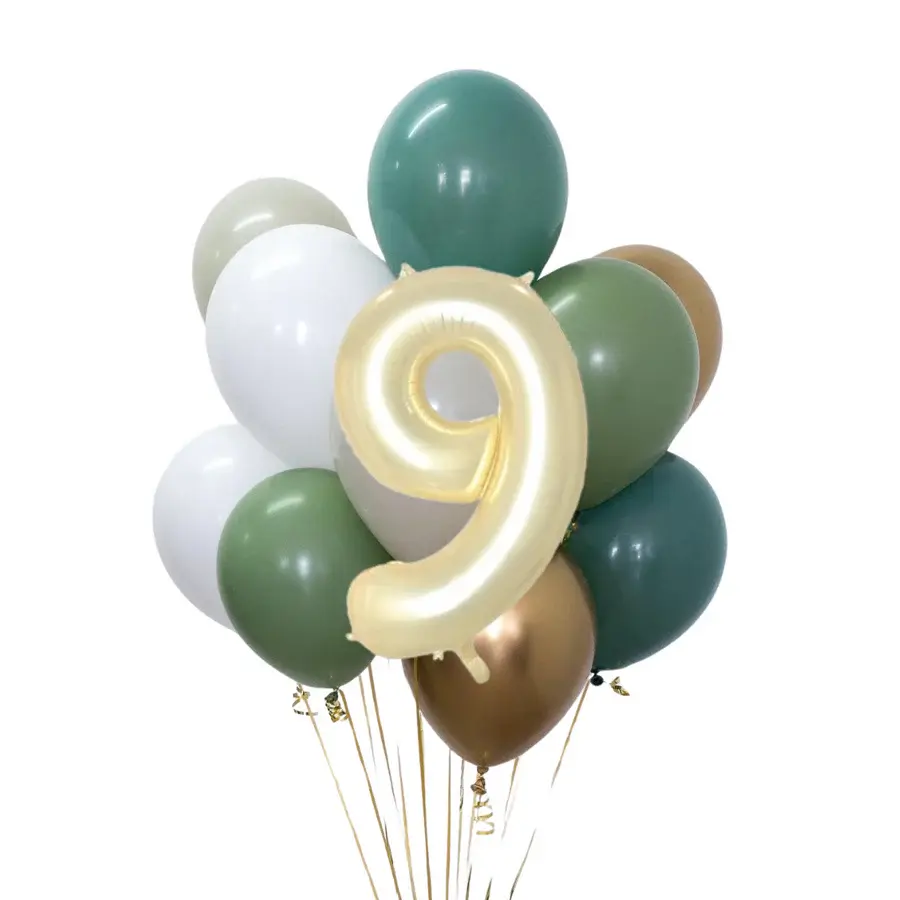 Модный букет из латексных шаров в оливковом и золотом цвете с цифрой бежевого цвета на День Рождения мальчику или девочке! В состав входят: