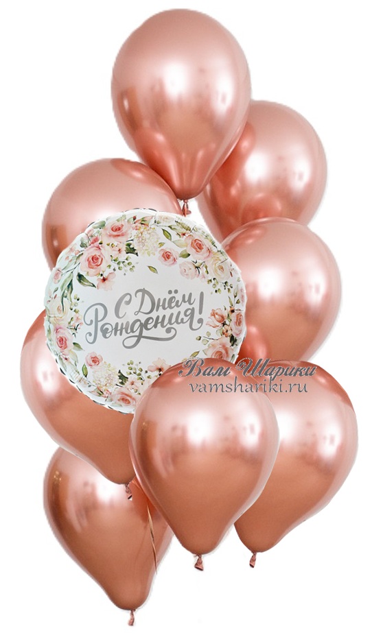 Купить шарики с гелием цвета розовое золото хром на День Рождения