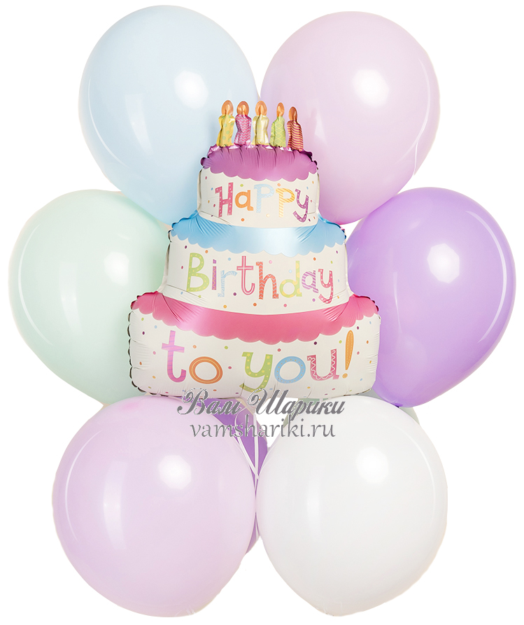 Купить набор шариков с гелием с тортом на День Рождения недорого