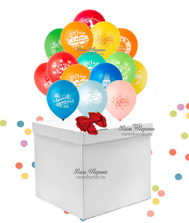 ВНИМАНИЕ: цена указана за данный вариант сюрприза без игрушки (либо другого подарка), только за коробку и 15 латексных шаров с гелием длительного полета на День Рождения.