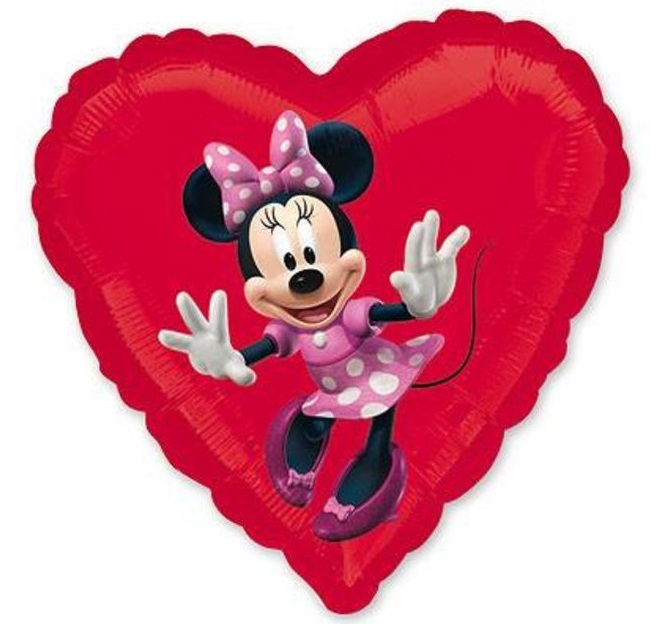 Фигурный шар из фольги с гелием в виде красного сердца с Минни Маус в розовом платье, отличный подарок девочке! Размер фигуры 46 см.