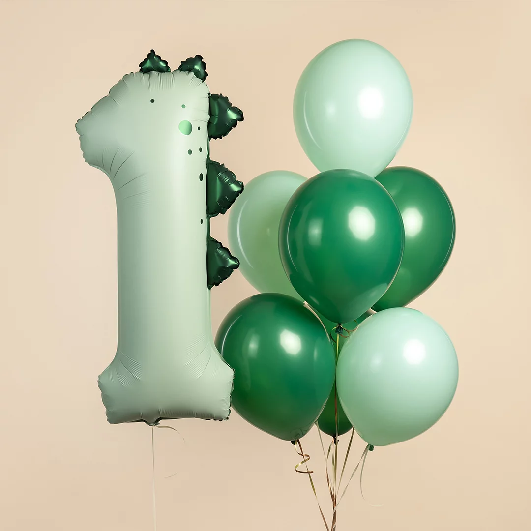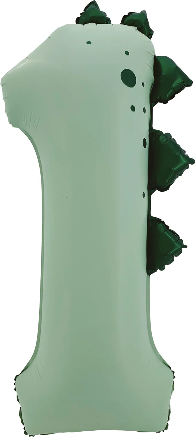 Фигурный шар из фольги с гелием в виде цифры №1 зеленого (оливкового) оттенка сатин в стиле Дино. Высота цифр без учета наполнения 107 см. Цифра доставляется на грузе ручной работы.