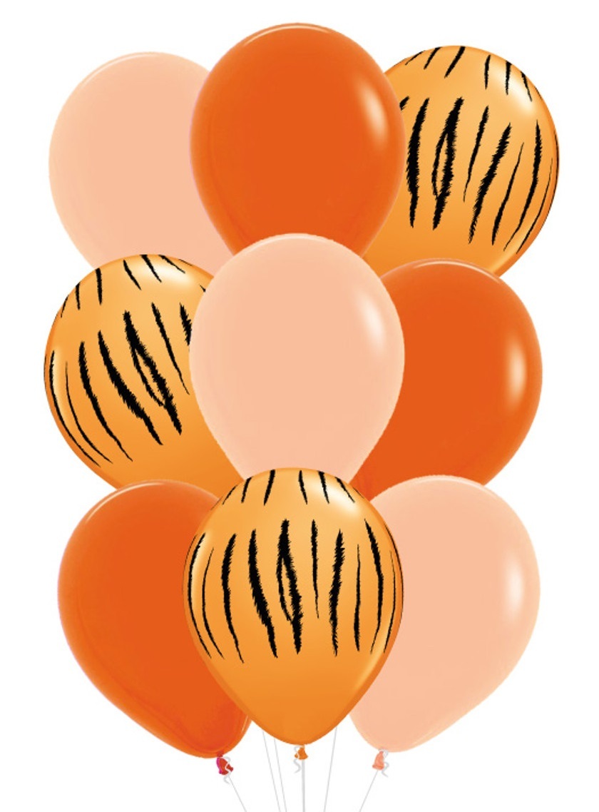 Шарики с принтом тигра и оранжевые шары с гелием в букете