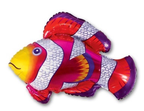 Фигурный шар из фольги с гелием в виде рыбы красного цвета, размером 70 х 100 см.