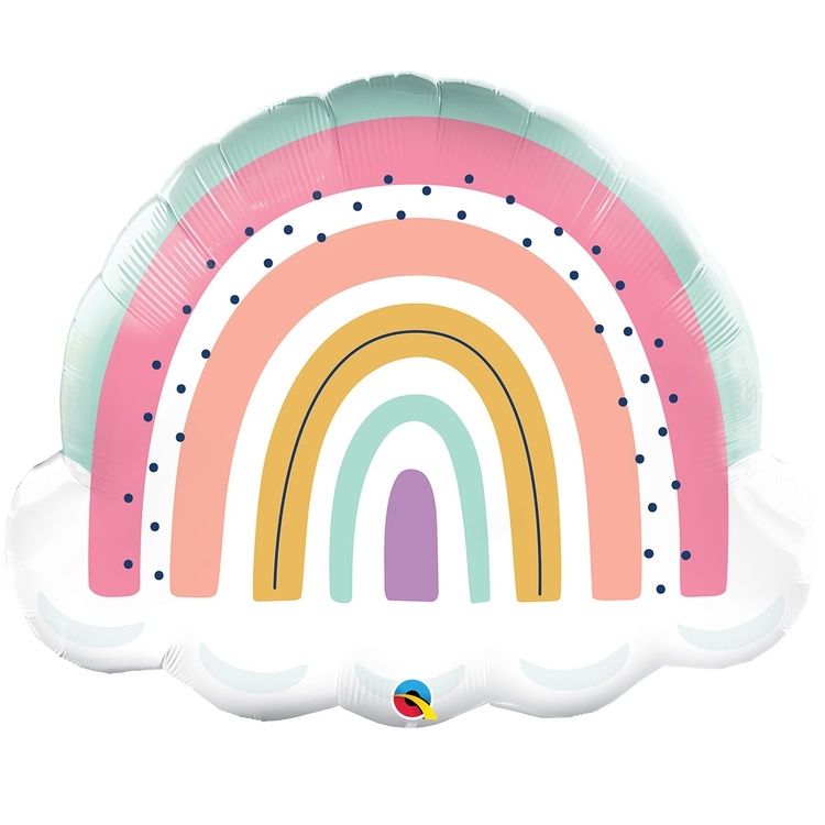 Фигурный шар из фольги с гелием в виде очень красивой радуги, нарисованной как будто ребенком акварельными красками. Размер фигуры без учета наполнения 81 см.