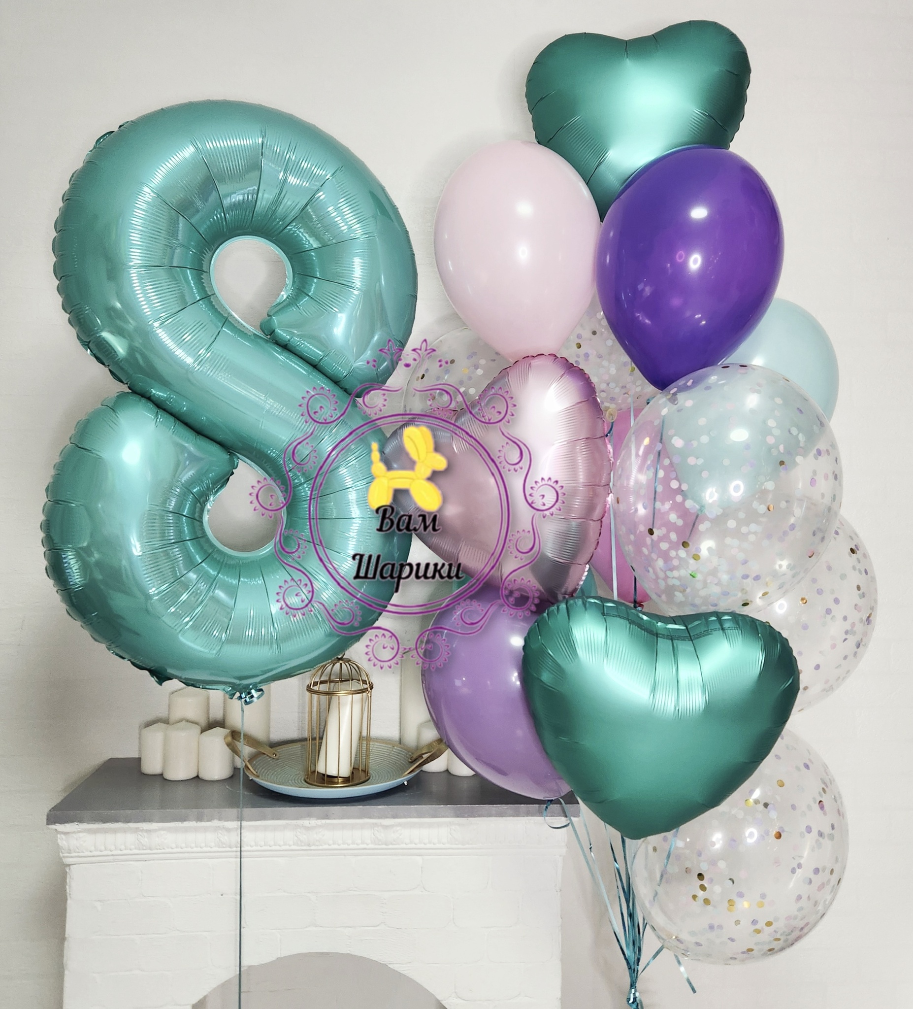 Фигурный шар из фольги с гелием в форме сердца цвета сатин бирюзовое, размер фигуры 46 см.