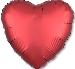 Фигурный шар из фольги с гелием в форме сердца в цвете сатин красное, размер фигуры 46 см.
