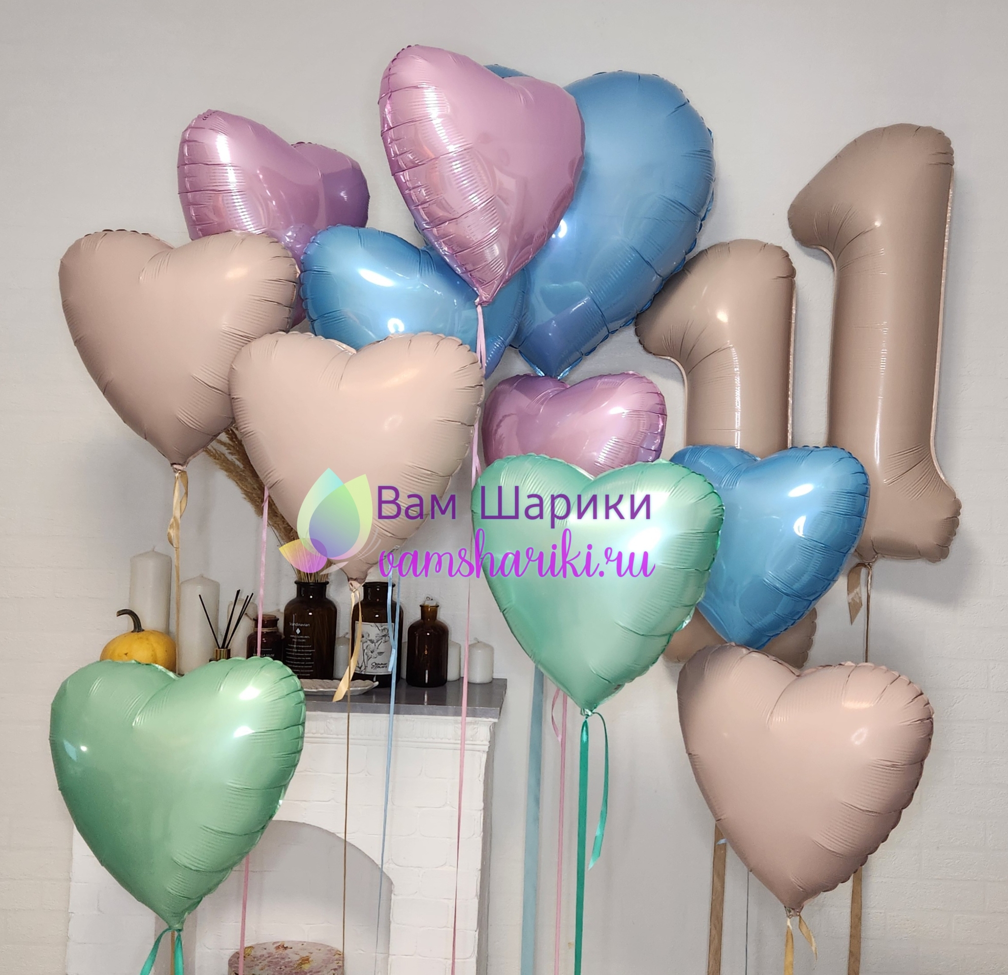 Фигурный шар из фольги с гелием в форме сердца цвета сатин мятное, размер фигуры 46 см.
