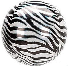 Абсолютно круглый фольгированный 3D шар из 4 частей, с невидимыми швами, с принтом, имитирующим окрас зебры. Размер шара 40 см, наполне гелием и установлен на грузик. Отличный вариант для оформления мероприятий.