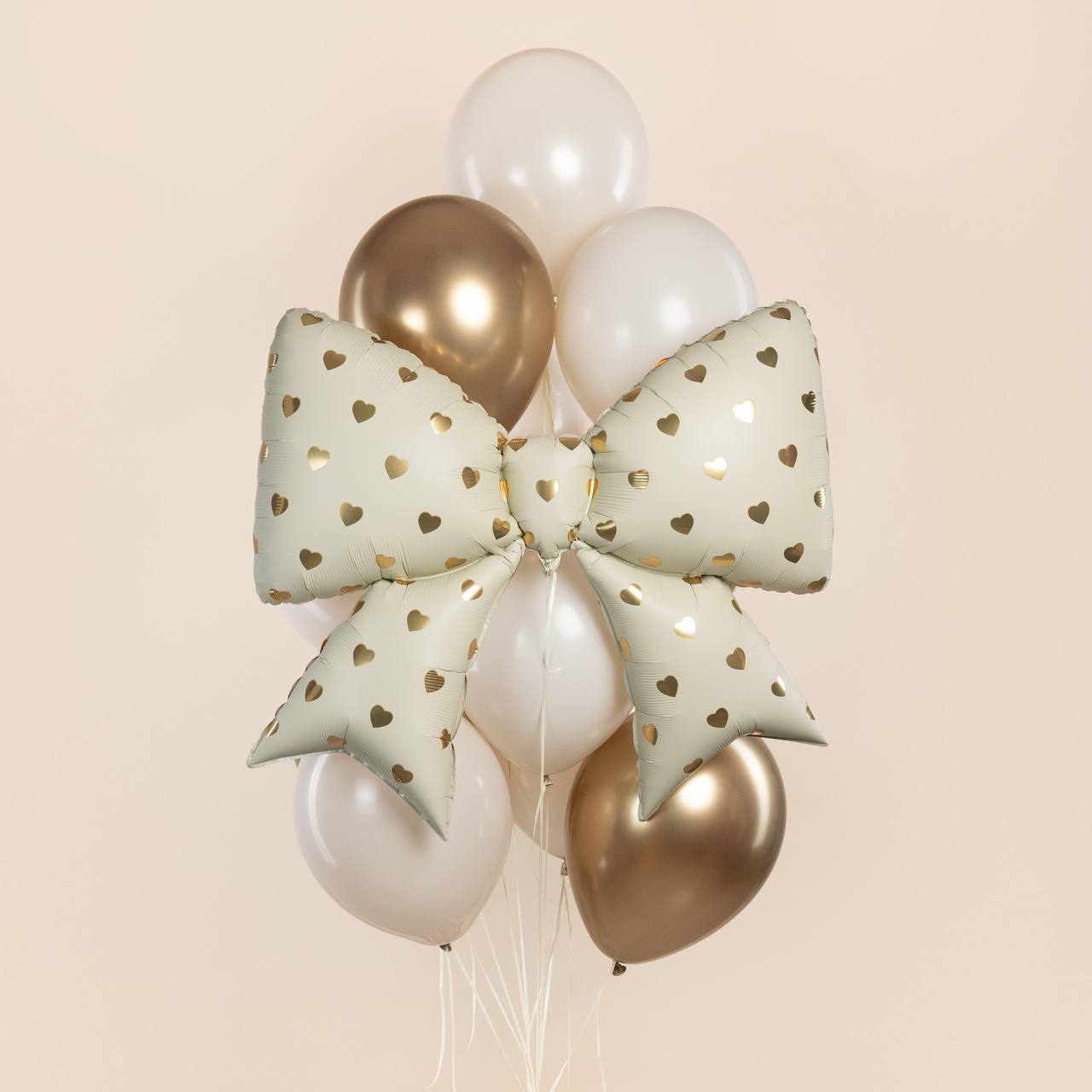 Фигурный шар из фольги с гелием в виде кремового бантика с золотыми сердечками, размер фигуры без учета наполнения 97 см. Фигура доставляется с гелием. Отличный вариант для подарка на любой праздник, а так же для декорирования фотозоны!