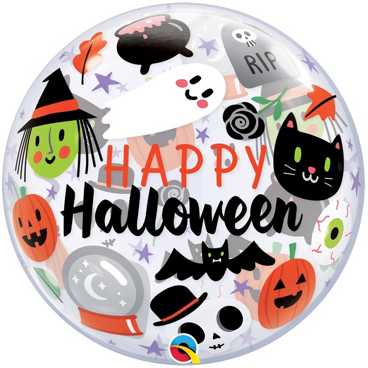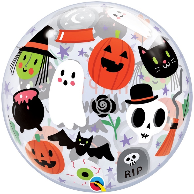 Круглый шар 3Д прозрачный с изображениями по всему шару символов Хэллоуина. Размер шара 50 см. Установлен на грузик.