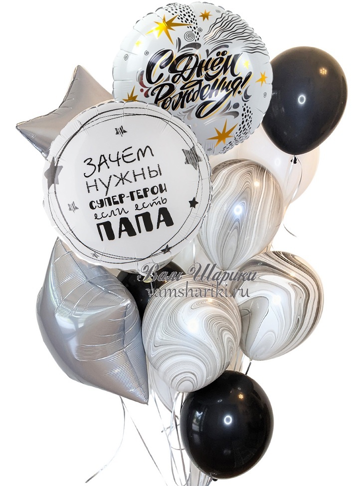 Набор шаров с гелием на День Рождения для любимого папы в красивом черно-белом цвете. Состав букета: