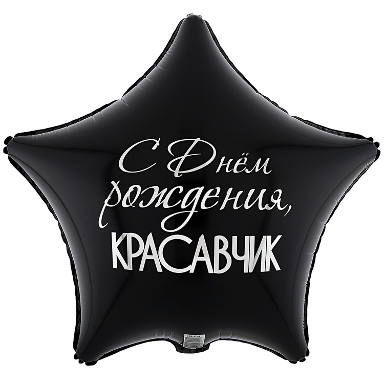 Фигурный шар из фольги с гелием в виде звезды разного цвета с каждой стороны, с одной - черный, с другой синий, но надпись на каждой стороне одинаковая - С Днём Рождения, Красавчик. Размер фигуры без учета наполнения 46 см.