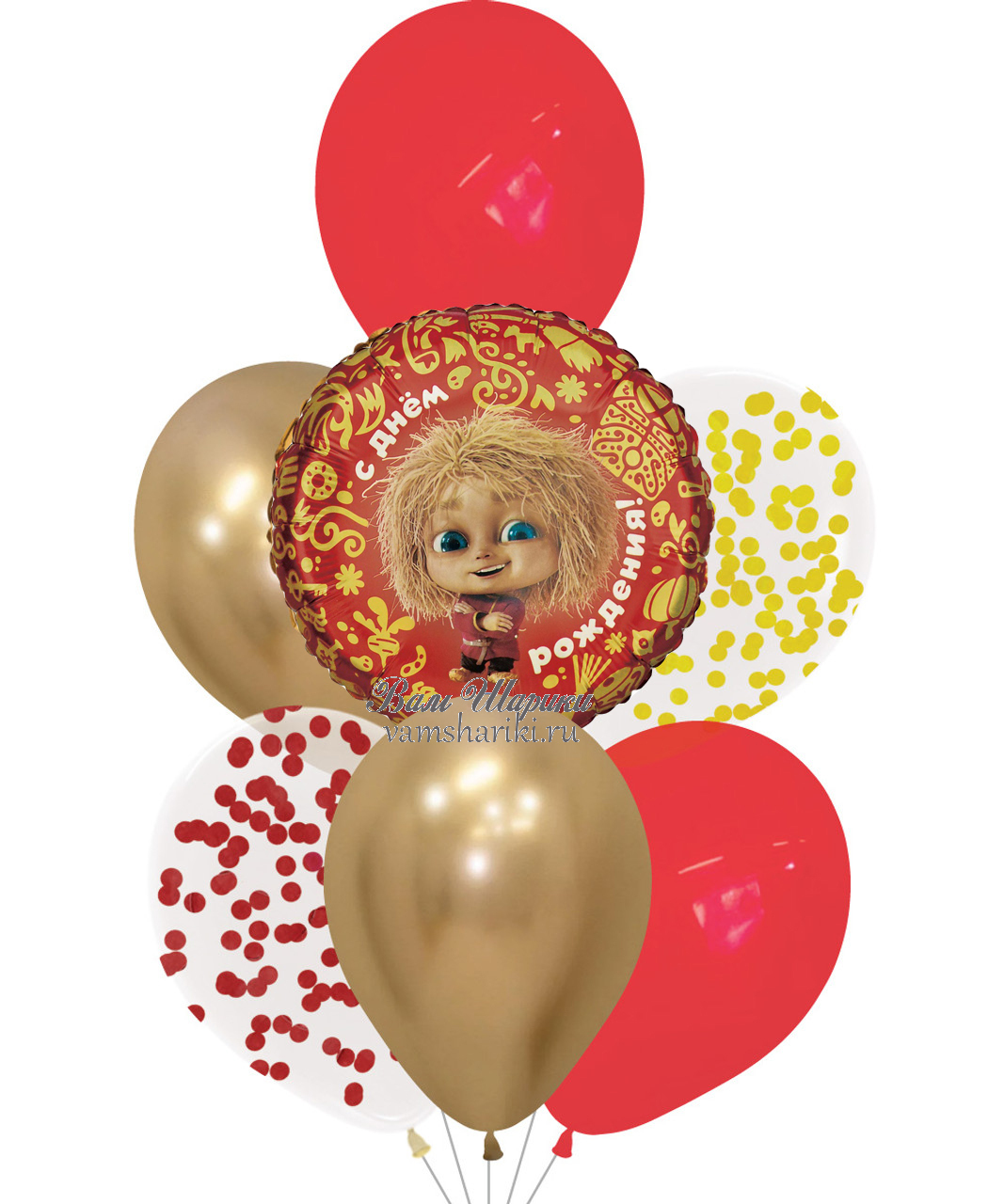 Добрый и веселый мультфильм советского времени "Домовенок Кузя" снова с нами, только теперь для современных деток на шариках с гелием на День Рождения. Состав букета: