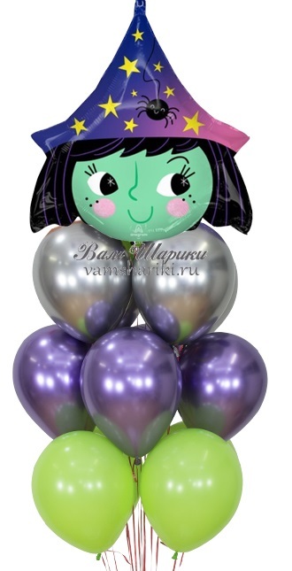 Букет шаров с гелием на Хеллуин с ведьмой для украшения