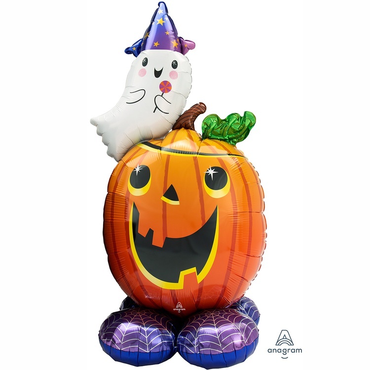 Объемный фольгированный шар высотой 142 см и шириной 71 см, который можно использовать как самостоятельную декорацию для Хэллоуина. Данный шар надувается ВОЗДУХОМ - ОН НЕ ЛЕТАЕТ.