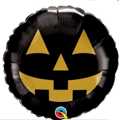 Фольгированный шар из фольги с гелием в виде круга с изображением черной тыквы на Хэллоуин. Размер шара 46 см без учета наполнения.