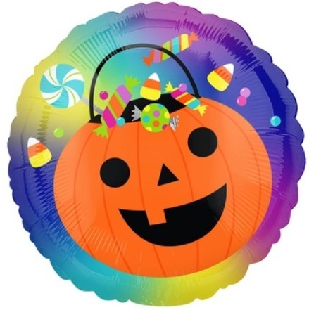 Фигурный шар из фольги с гелием в виде круга с тыквой-конфетницей - это традиционная игра на Хэллоуин, раздавать конфеты детям. Размер фигуры 46 см без учета наполнения.