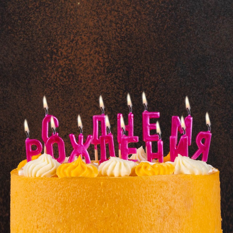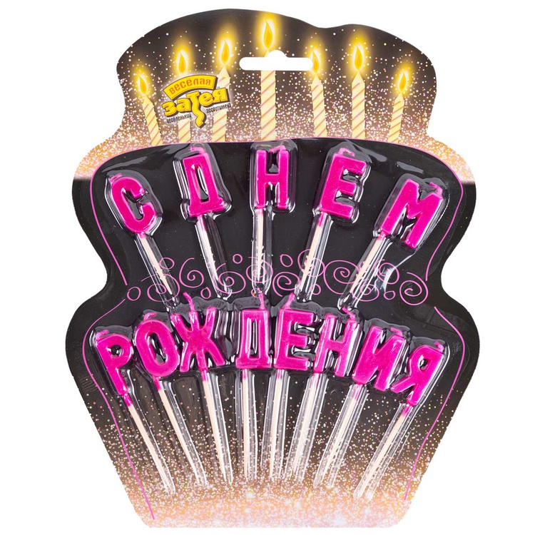 Свечи-буквы "С Днём Рождения" ярко-розовые