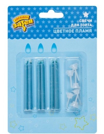 Интересные свечи-пики для десерта в День Рождения мальчика с голубым пламенем. В упаковке 6 шт, высота 6 см, с держателями.