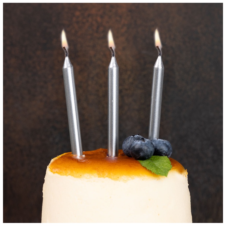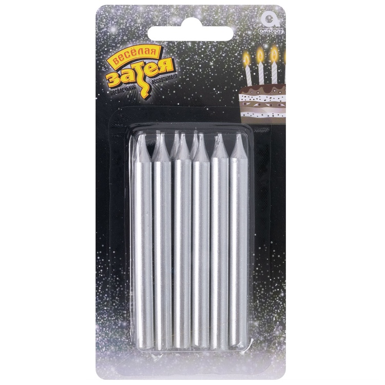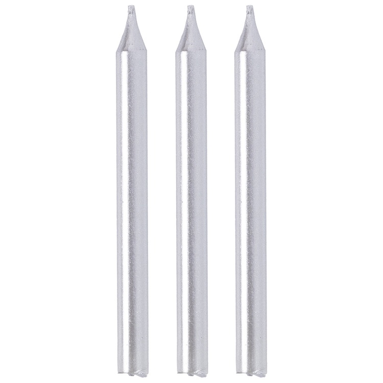 Красивый набор серебряных свечей в торт. Высота свечей 8 см, в упаковке 12 шт, без держателей.
