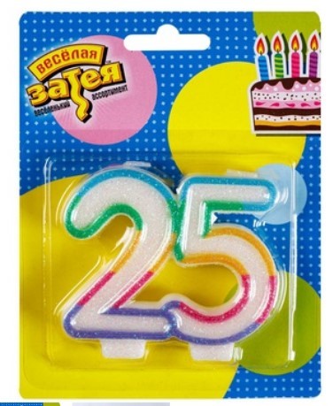 Свеча-цифра "25 цветная" 7 см
