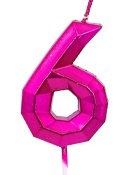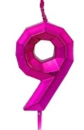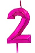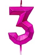 Свечи в форме цифр в торт или десерт небольшого размера, всего 4,5 см. Свечи на пиках, чтобы было удобно вставлять в десерт. Цвет ярко-розовый металлик и геометрическая форма, которая напоминает бриллиант.